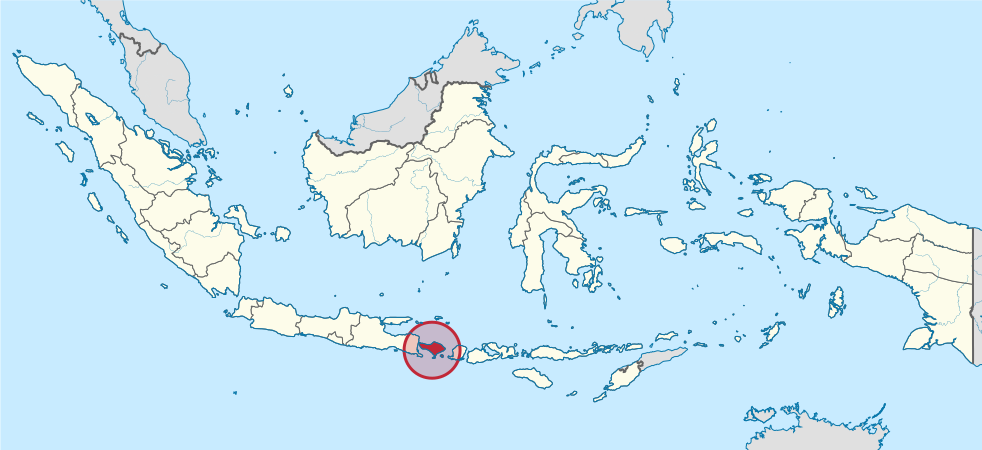 An Indonesian island known for its forested volcanic mountains and iconic rice paddies